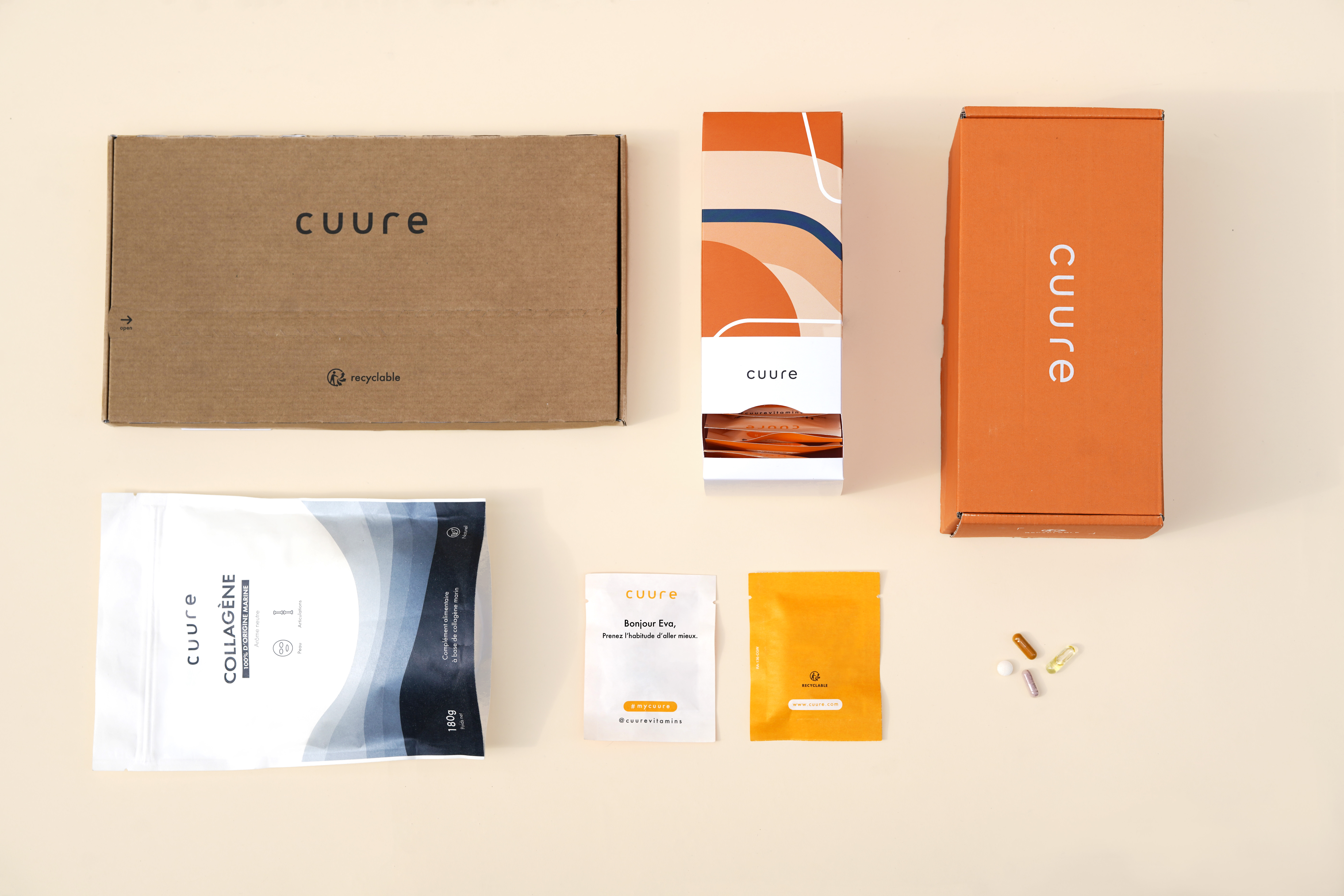 Tutti gli elementi del packaging di Cuure sono sostenibili e riciclabili: pacco, scatola, Box, bustine, nota esplicativa e foglietto illustrativo.